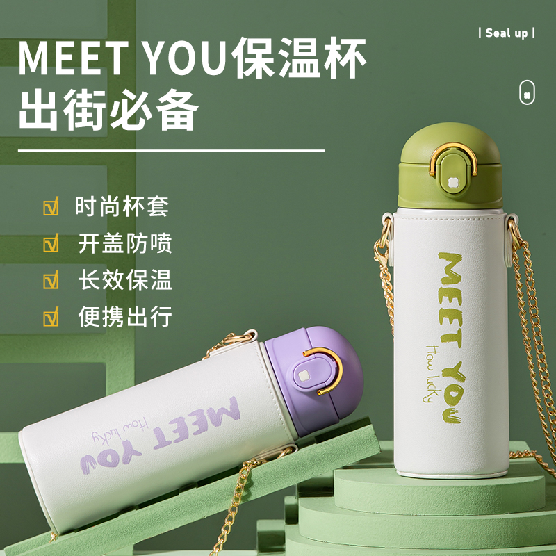 高颜值316不锈钢保温杯便捷杯套吸管弹跳杯