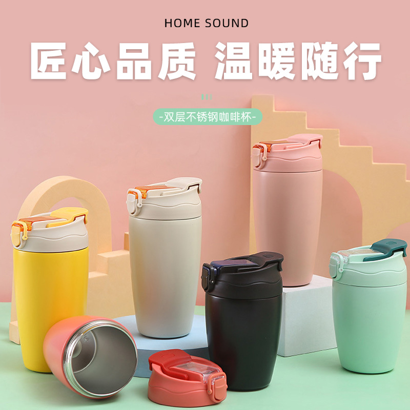 316不锈钢保温杯男女学生时尚弹跳杯子便携水杯礼品 商务车载代发