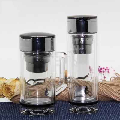 双层泡茶杯旋转高硼硅保温水杯定制