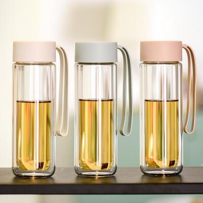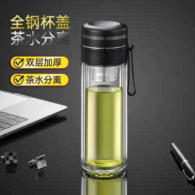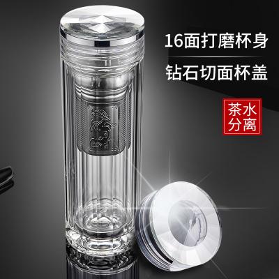 高档茶水分离杯双层隔热玻璃杯商务泡茶杯子